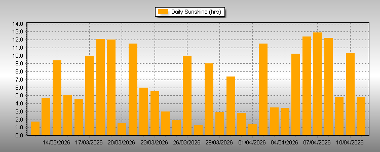 These Graphs Represent Temperature, Pressure, Rainfall Wind Speed and Sunlight Trends for the Last 24 Hours .