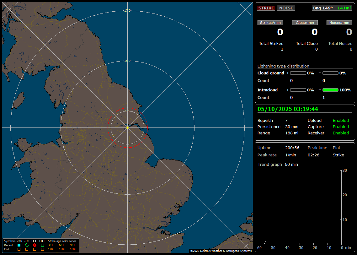 Live Lightning Strikes across the UK using my own personal Boltek LD-350 Lightning Detector...