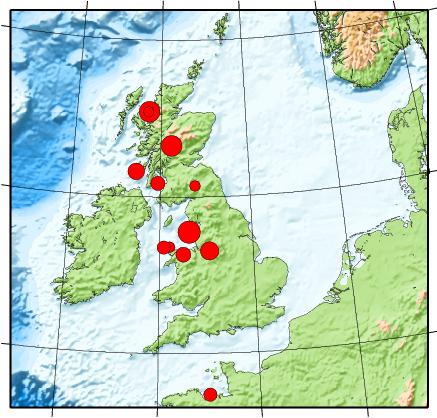 MELLDALLOCH,ARGYLL/BUTE | 2.2 | 244 mi (393 km) | 18:21:15 BST Mon, 18-Aug-25 | Map |